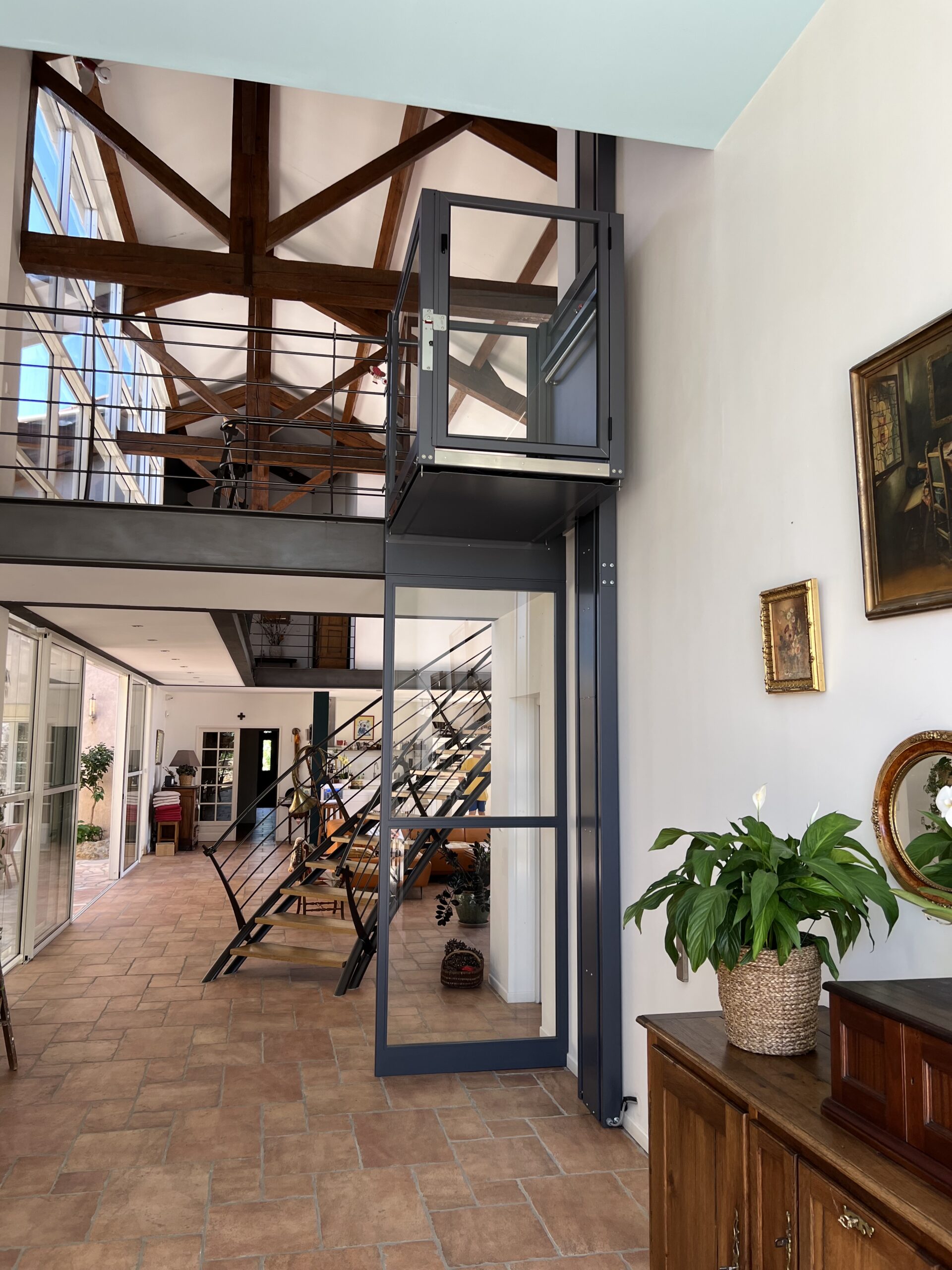Conçu en acier galvanisé ou aluminium, avec des vitres en verre sécurit disponibles en plusieurs teintes, il s’intègre harmonieusement dans votre intérieur tout en apportant une valeur ajoutée à votre bien immobilier. Attention : L’ascenseur nécessite des travaux de génie civil plus importants qu’un élévateur, mais reste la solution la plus complète sur le long terme.